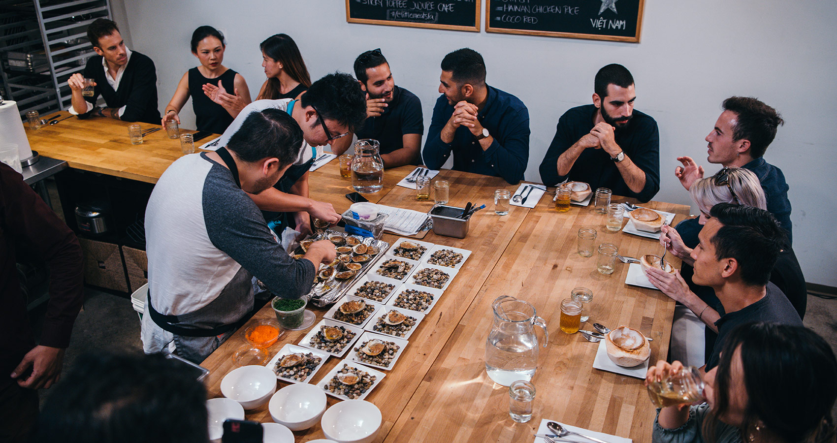 A l'heure actuelle, Little Meats LA peut rassembler 10 à 13 convives pour une expérience culinaire intime. Vous vous asseyez dans les canapés, engagez la conversation avec votre voisin qui vous est inconnu et ensuite vous passez à table pour une soirée Omakase (ōməkäsā).